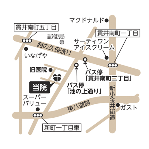 - 貫井前原循環[CoCoバス](武蔵小金井駅発)『池の上通り』下車にて徒歩2分
