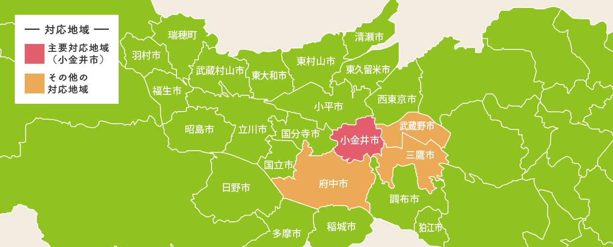 当院では、小金井市にお住まいのお子さんはもちろん、近隣の市区にお住まいのかたの予防接種も受け付けています。自治体ごとに手続きが異なる場合もありますので、詳細は下記をご覧ください。