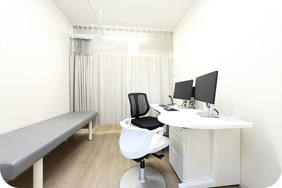 子どもにとって、病院は緊張や不安を感じやすい場所です。当院では、診察をできるだけ怖がらずに受けられるよう、診療の進め方や声かけに配慮しています。診察室内にはアートを取り入れたり、子どもが安心できる工夫を取り入れたりすることで、病院が嫌いにならないよう対応いたします。